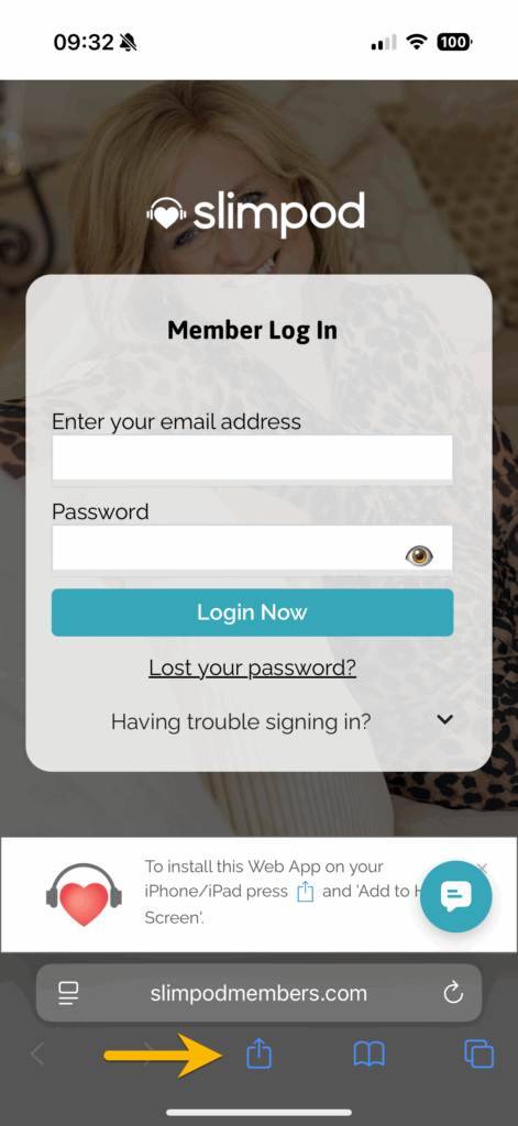 - Open Safari and head to SlimpodMembers.com